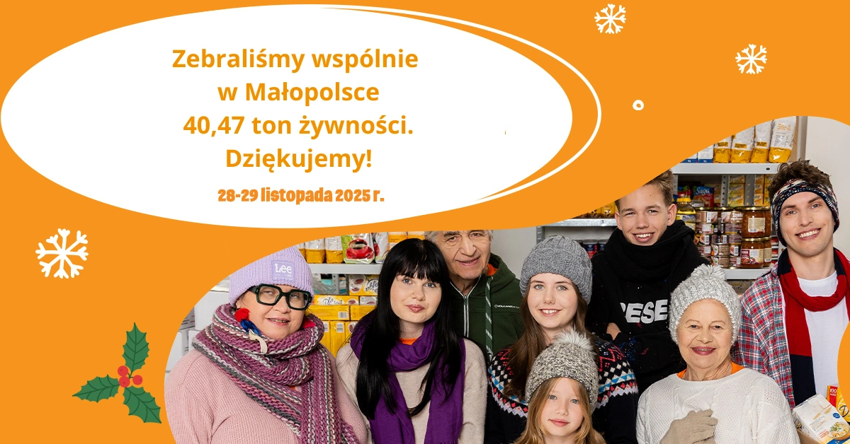 Rekordowy wynik Świątecznej Zbiórki Żywności w Małopolsce – 40,47 ton wsparcia dla potrzebujących